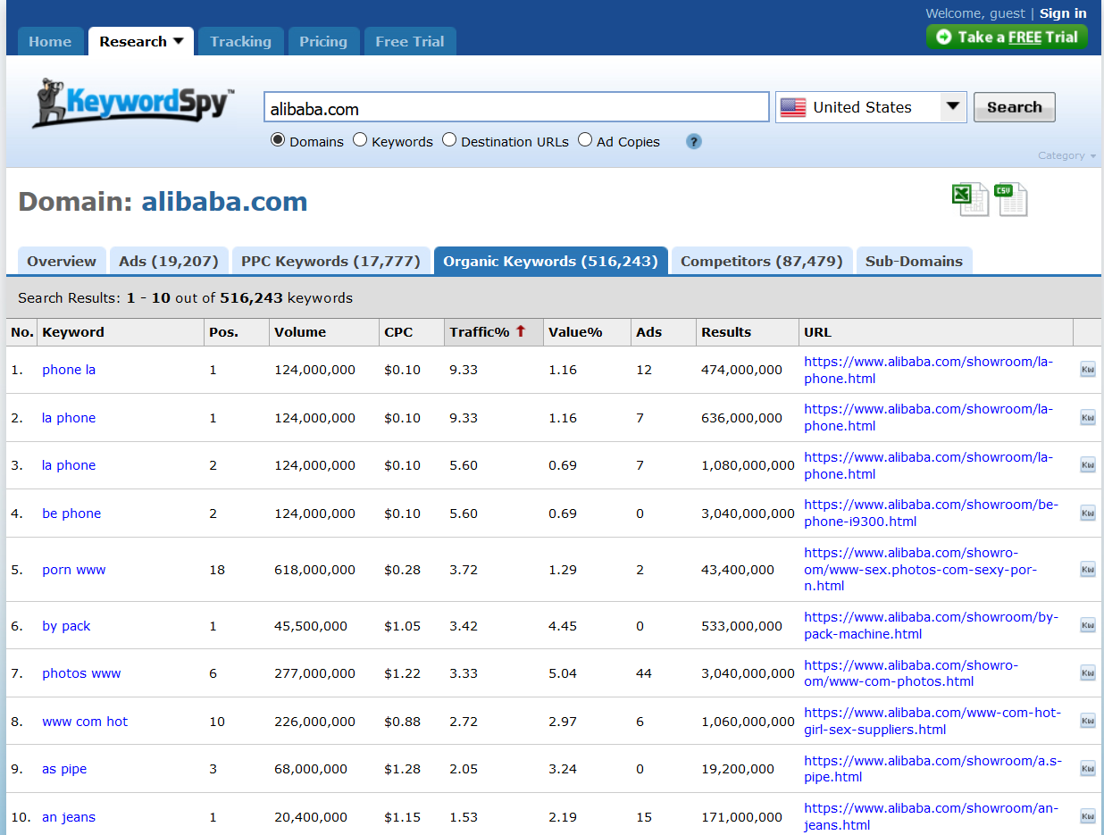 从上图中我们可以看到,alibaba.com这个网站: