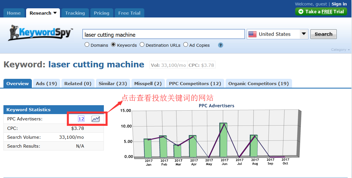 大家看这个工具对于竞争对手的Google Adwords广告分析非常详细,我们做广告之前如果能通过这个工具先进行分析,对于出什么价格,非常有参考价值。