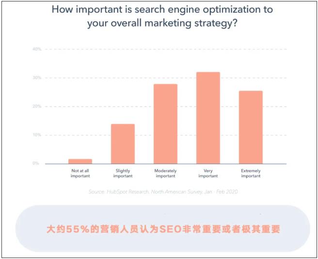 大约55%的营销人员认为SEO是企业很重要的一部分