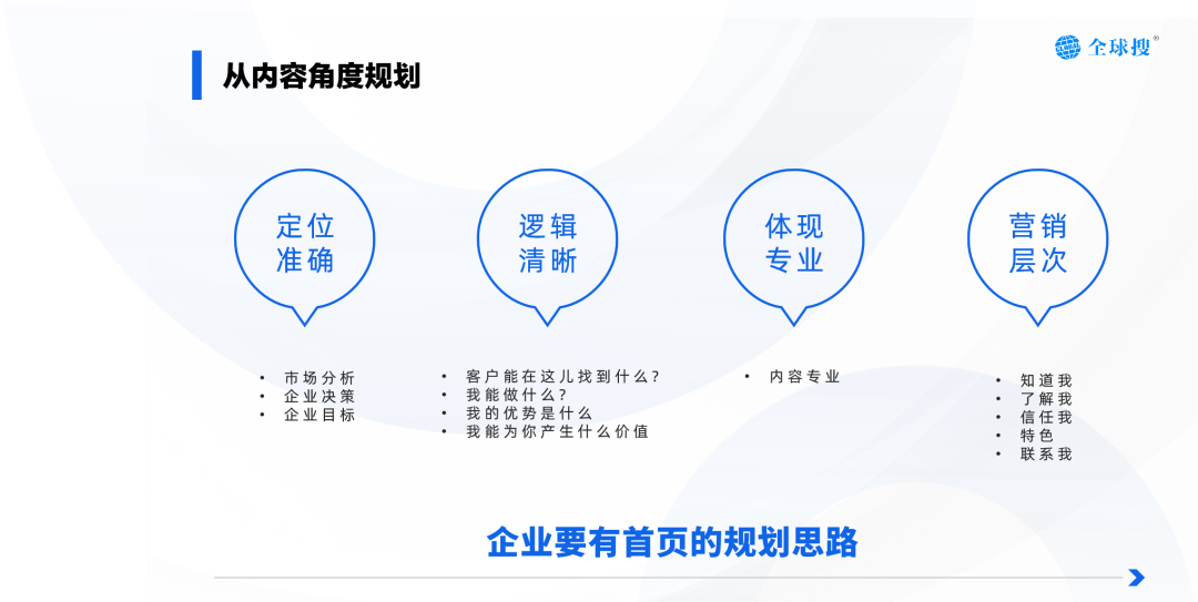 企业内容,则从专业度、经验、成就等方面宣传包装自己,以此增加访客信心,提升信任度。