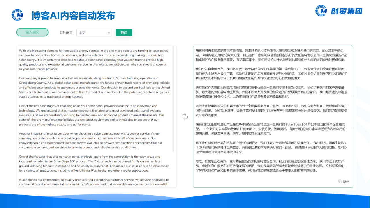 ⑤全球搜独家的爬虫+AI大数据模型,能创作出高质量的新闻博客文章,通过AI大数据模型能根据企业信息、实时新闻等更加原创化文章内容。目前,谷歌也在打击AI文章,所以超过一定字符,全球搜AI网站将会自动启动去AI痕迹,大大提高预防能力。