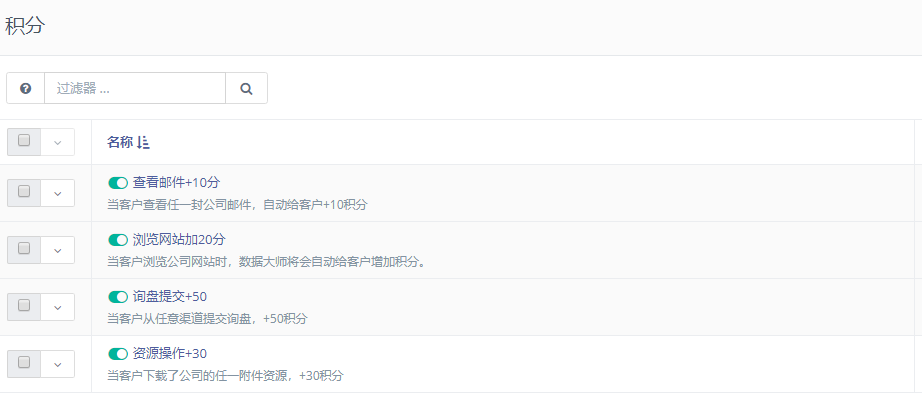 当客户查看邮件,浏览网站,下载附件等等任何互动,数据大师都会为他自动加分,让一直犹豫不决的客户显出原形。你可以通过给这些客户特殊折扣,小样品免费等方式,批量化的进行逼单。