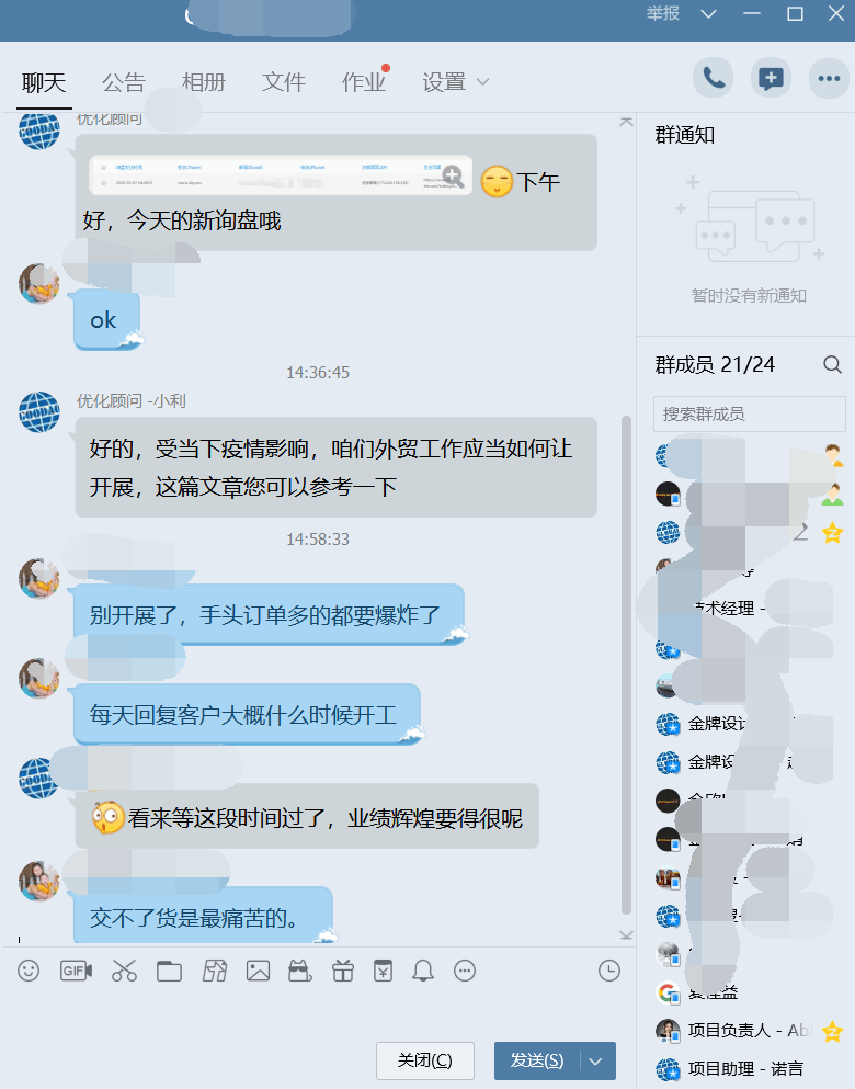 除此了安抚客户的邮件模板之外,高效的工具也是必要的。如果复工了的话,非常有必要联系之前的老客户,告诉他们我们已开工,欢迎正常订货。