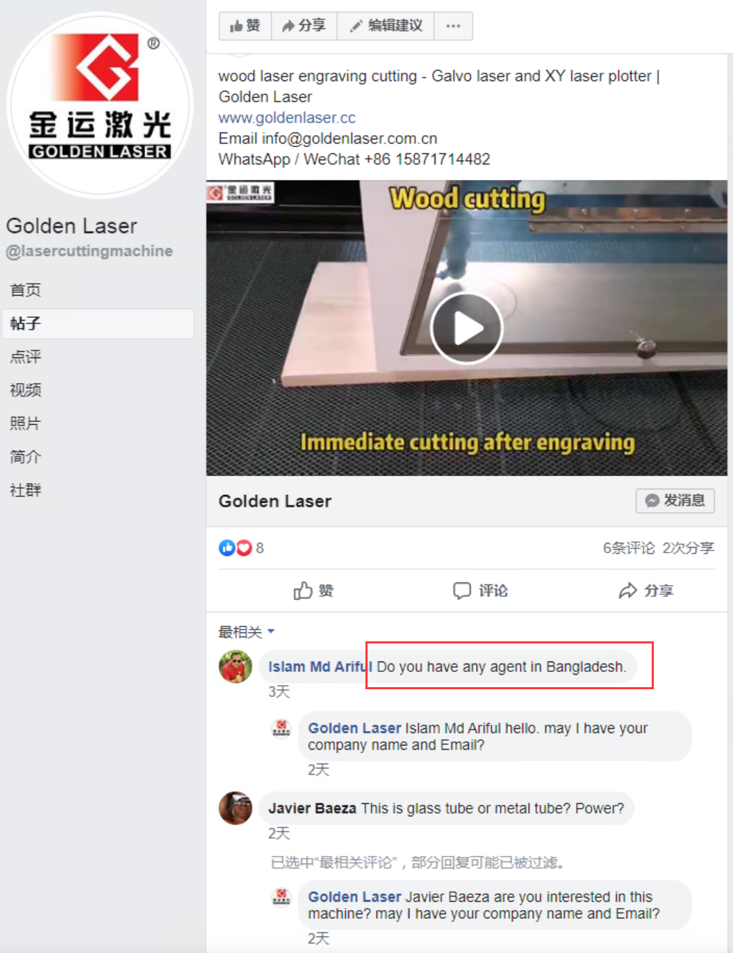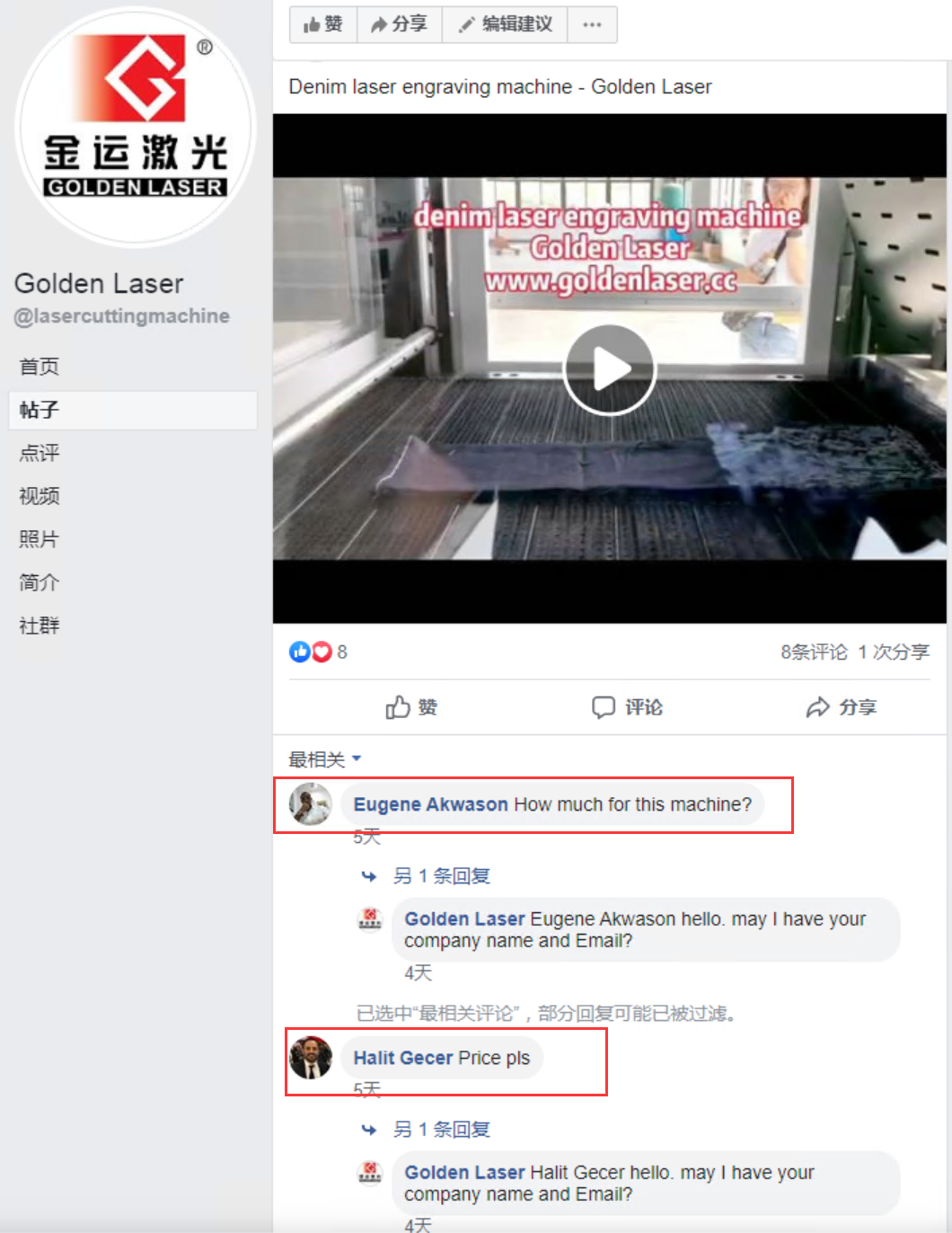 在社交媒体上发布产品,吸引采购商留言询价,外贸企业再主动联系客户,如下图所示: