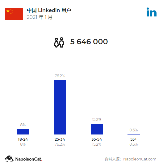 其中包括了6100万高层影响者和 6500万决策者,与这一部分人建立社交联系是外贸企业获得商机的绝佳渠道。而且中国的LinkedIn用户已经达到了564万,外贸企业占据其中绝大多数,如果你的企业在LinkedIn上还是一片空白,可能意味着企业被同行超越许多。