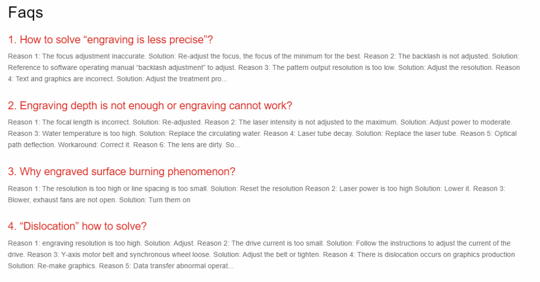 上面这个FAQ内容建立了单独页面,使用不同字体和颜色区分问题和答案,访客能快速找到相关问题及解决办法。或者是使用下面这样的方式: