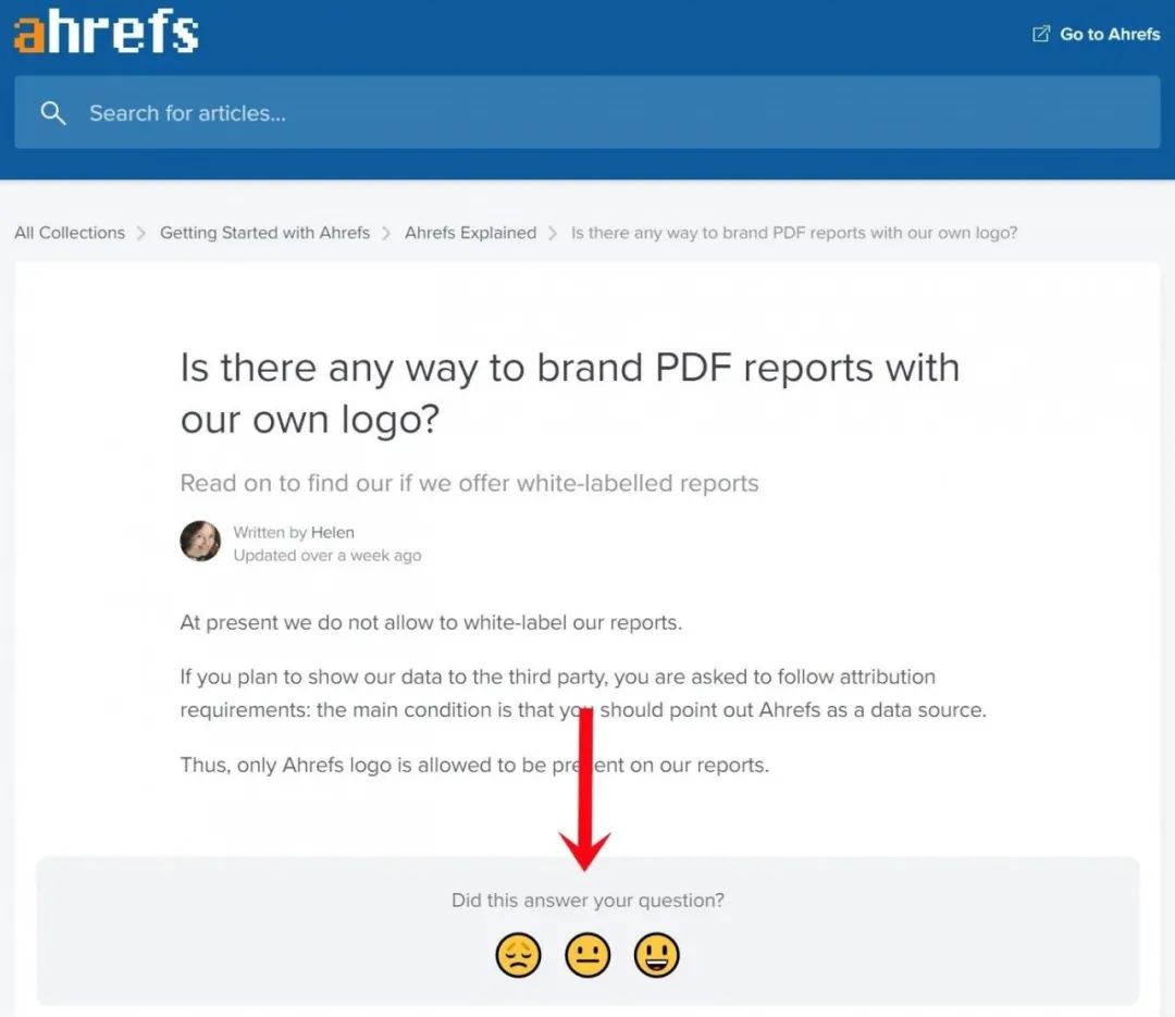这个满意度分数告诉Ahrefs哪些内容对用户有效,哪些内容存在缺陷,需要弥补,非常值得大家参考。