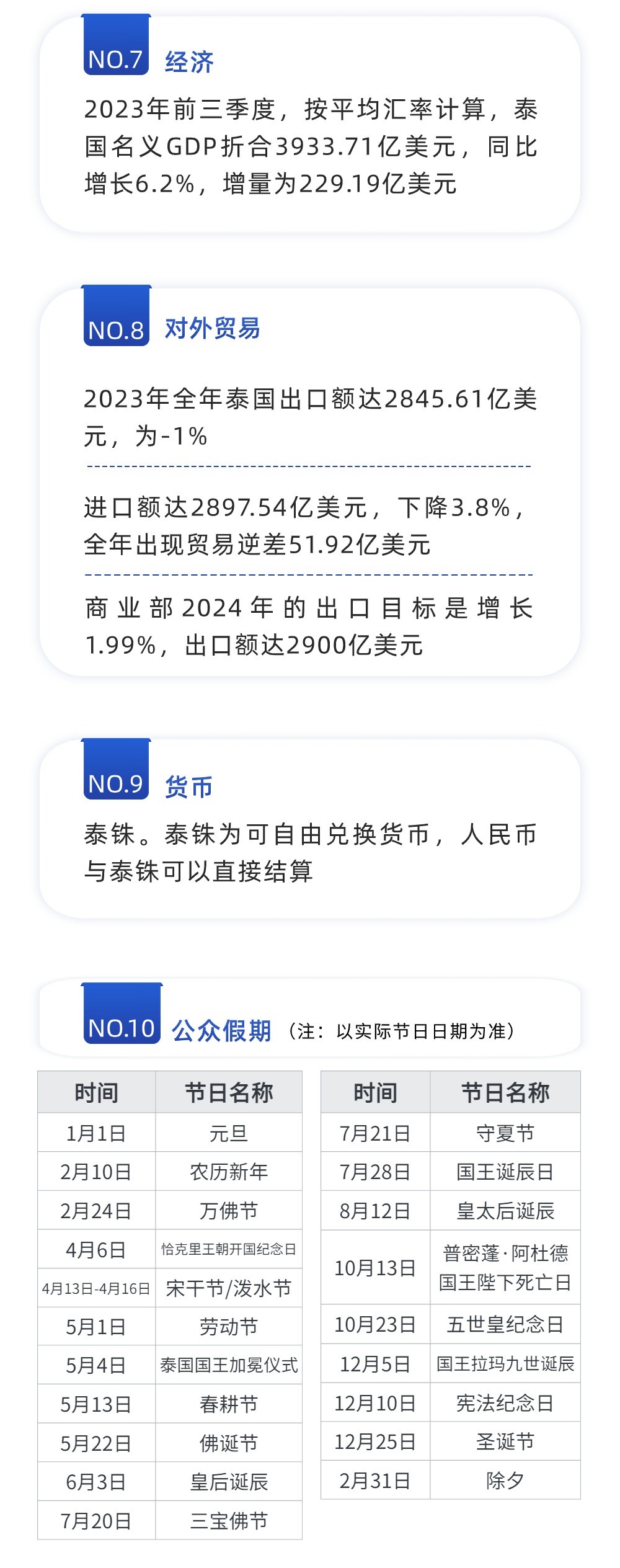 泰国是中国在东盟第四大贸易伙伴、第四大出口市场和第四大进口来源国。中国亦是泰国最大贸易伙伴之一。