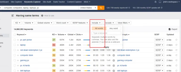 Ahrefs是领先的数据公司和 SEO 工具集提供商之一。他们的目标是帮助公司将资金投资于智能SEO 策略,并帮助最大化其网站的流量。借助他们的工具,Ahrefs 提供了一种通过自动化营销实践来节省公司时间的方法。其中的Keyword Explorer工具便可帮助拓展适配的关键词。
