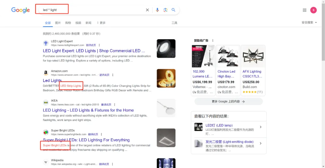 使用方法:关键词A * 关键词B(*星号前后皆有空格)