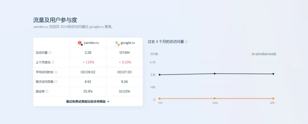 Yandex每天独立访问者超过5040万人,其广告服务每天被超过1500万人使用。Yandex不仅在俄罗斯受欢迎,在其他俄语国家如白俄罗斯和哈萨克斯坦也有较高的市场份额,已成为欧洲第二大主流搜索引擎,全球第五大搜索引擎。