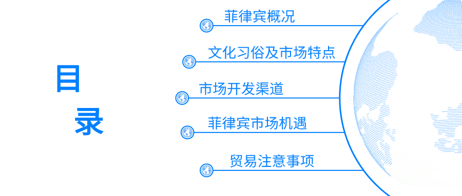 菲律宾人英语水平良好,华商较多,是一个相对容易开拓的新兴市场。他们很多习惯跟美国人相似。
