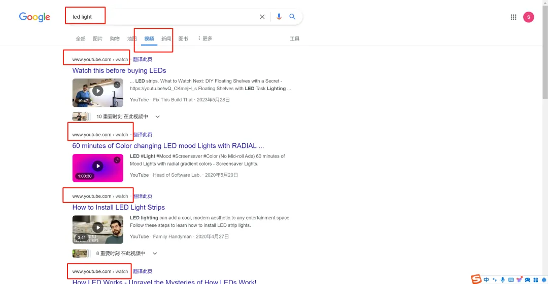 有需求的用户可以通过YouTube进行直接搜索,找到大量对应其需求的产品视频;同时,作为谷歌旗下产品,通过谷歌搜索后选择视频类别,同样也可以跳转到YouTube视频。