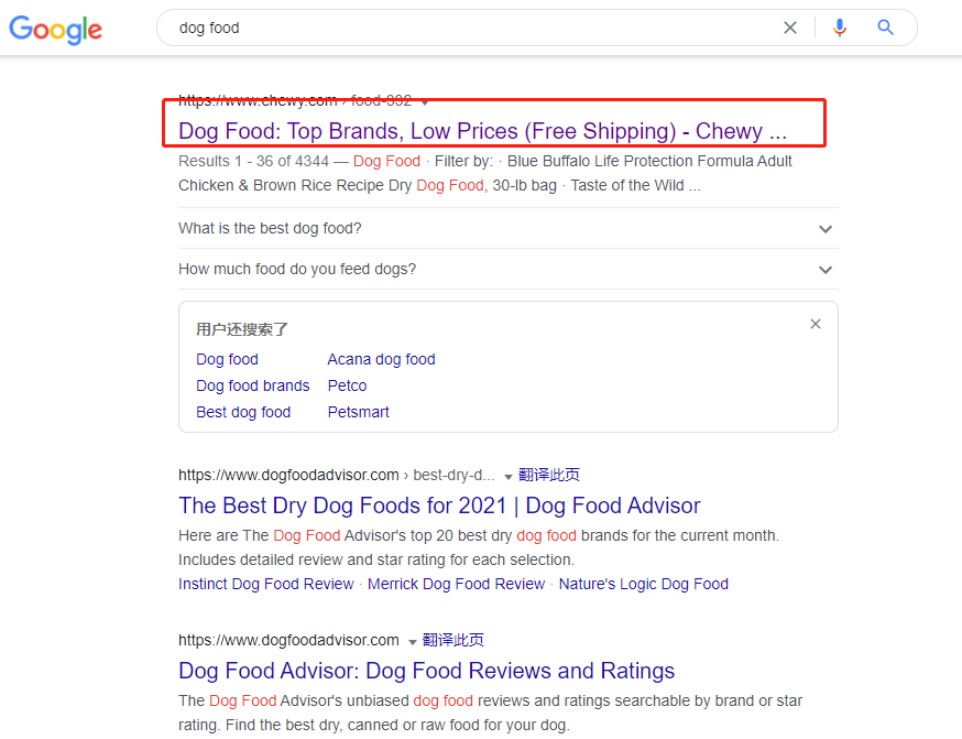 ·自己不知道想要哪种的狗粮:可能会在Google上直接搜索dog food;