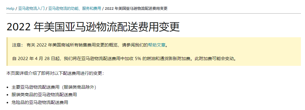 集装箱海外运输成本和燃料运输成本大幅增加的压力下,4月份,亚马逊宣布将对使用亚马逊物流服务FBA的第三方卖家征收5%的燃油和通胀附加费,将于4月28日开始实施。