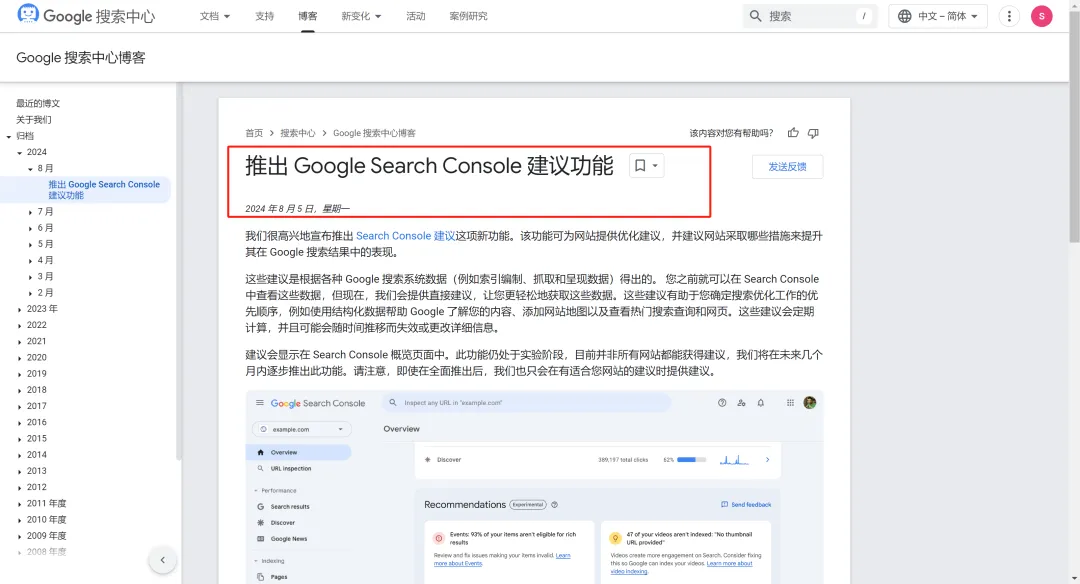 首先,在8月5日,谷歌官方发布文章:推出Google Search Console建议功能。