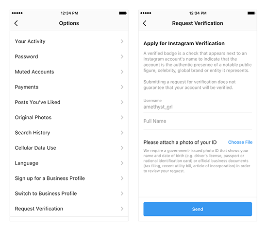 提交请求后,Instagram会要求你提供你的账号用户名、全名,还有合法的营业执照复本。不用担心隐私泄露,因为这些信息仅Instagram后台可见。