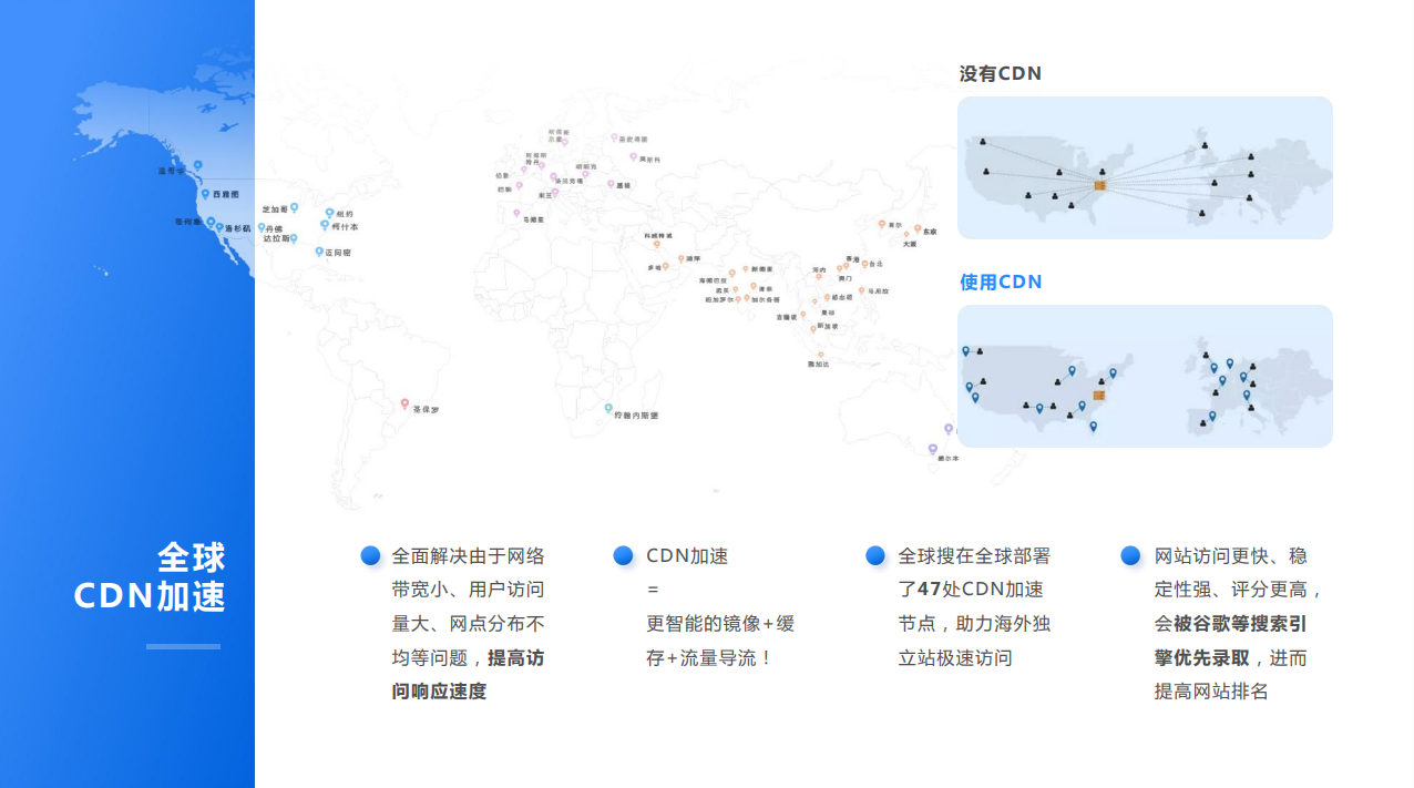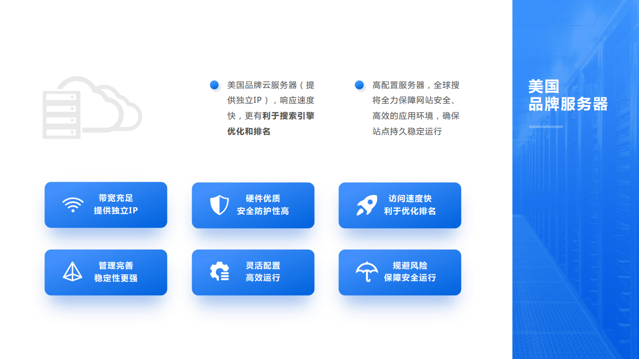 在致力于打造外贸营销型网站的过程中,全球搜融入了109种语言、全球CDN加速、美国服务器、大数据智能分析系统等种种优势,不仅让海外独立站在保证安全的情况下,实现极速访问,还让企业在建设私域流量,并形成转化等方面,拥有了领先同行的优势!