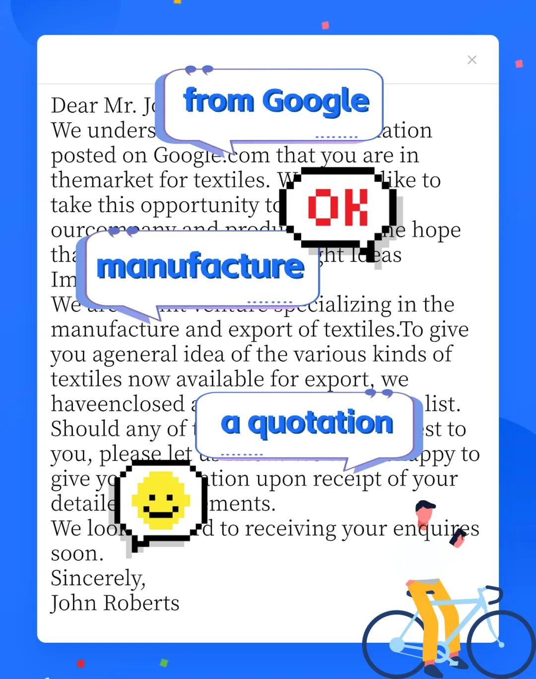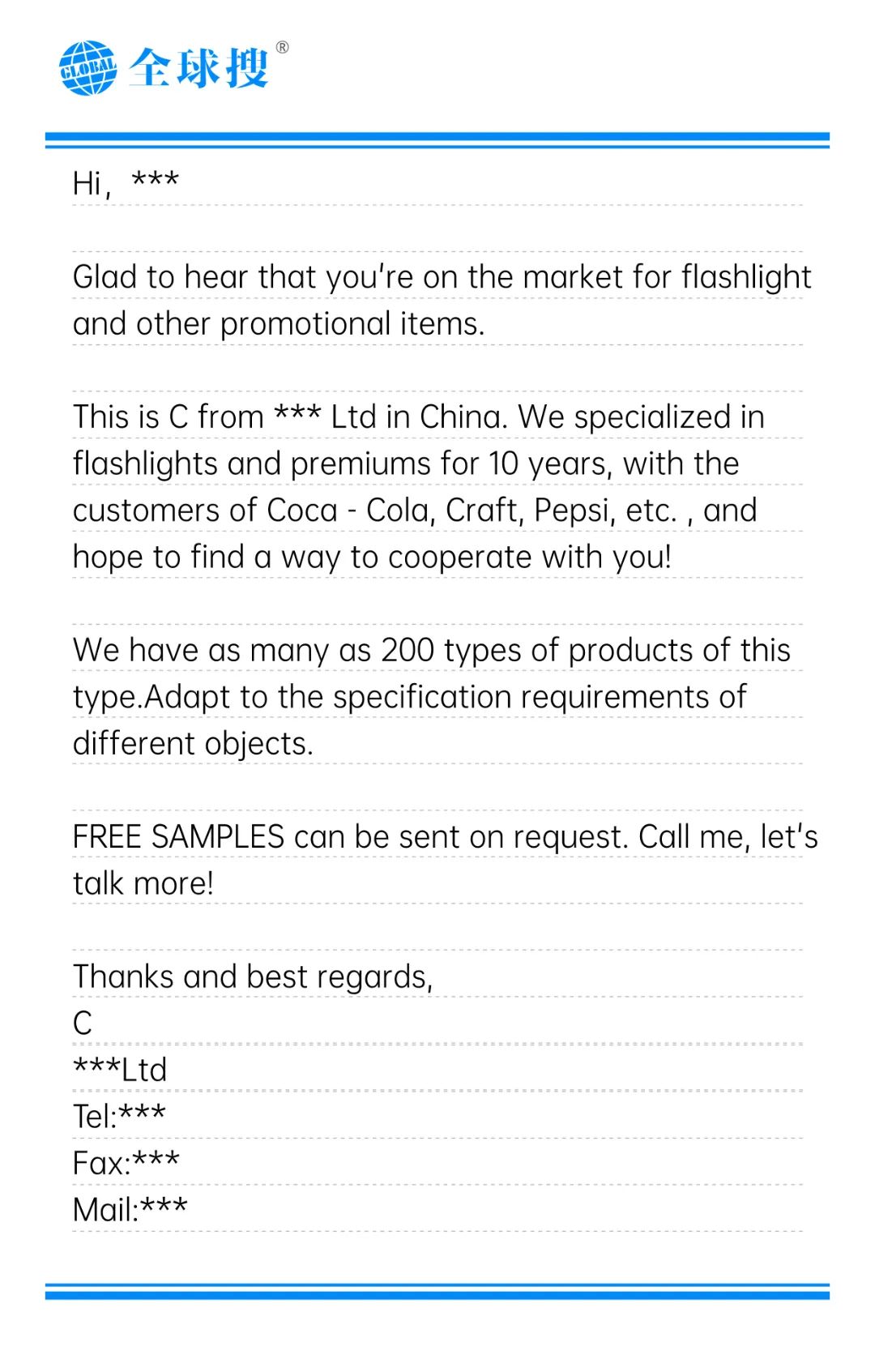 比如“Do you want our products?”,如果对方回复您“No”,又该如何应对呢?开发信的主要目的就是告诉客户你是谁、你做什么产品、你的产品优势是什么,即可!