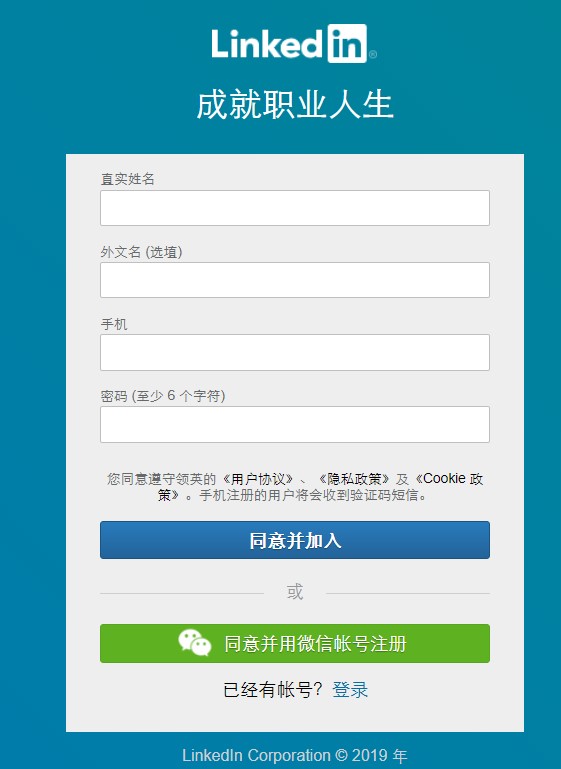 注册地址:https://www.linkedin.com/ 点击“马上加入”。