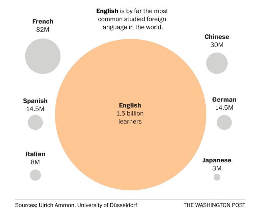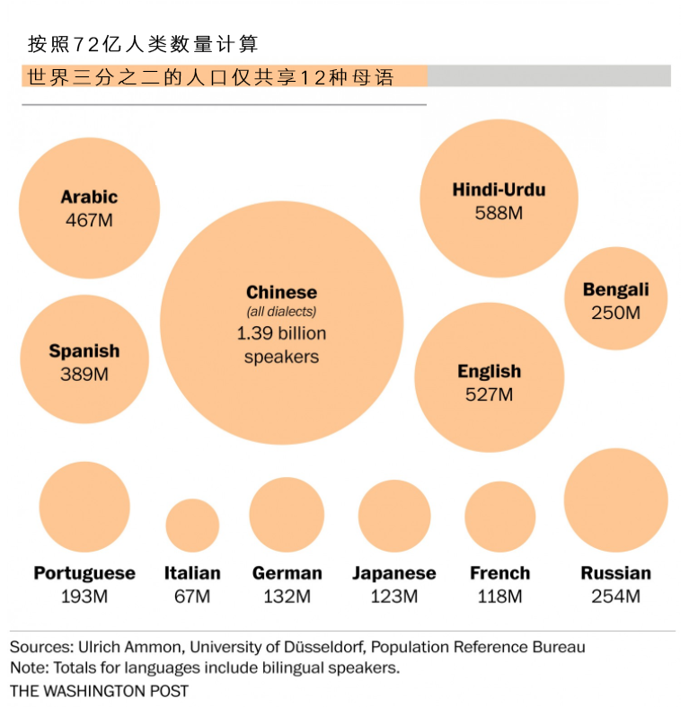 按照72亿人类数量计算的话,5亿人口使用英语,还有67亿人是有自己的母语的,虽然他们当中很多人会说英语,但他们的第一语言并不是英语。而根据统计超过85%的人会习惯阅读自己的母语,其次才是第二语言。