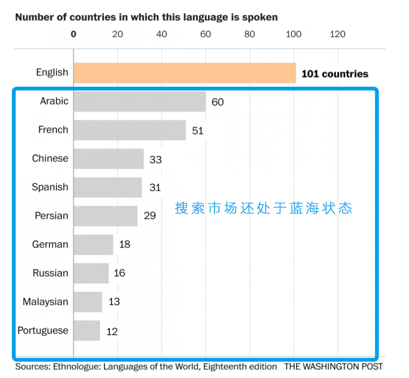 那么这意味着如果你只用英文做外贸推广,那么你的受众人群仅仅是这5亿人左右,因为大多数人并不会用英文去搜自己想要的产品,因为他们更习惯用自己的母语。