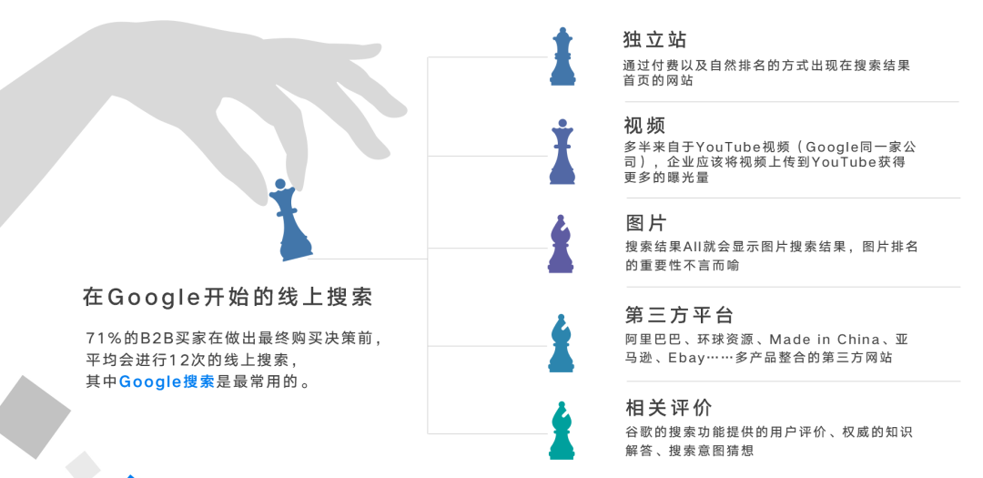 谷歌完全不同,大部分情况下,在谷歌上直接搜产品词,只要是和这个词相关的网页都有可能出现,零售商城,维基百科,B2B平台站等等。