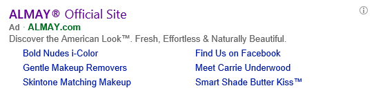 这是一则体面的广告,但算不上很好。令这则广告大打折扣的是其下方的多条附加链接,这些链接很广泛而组合随意,访客可看到它们来路不同并采取行动。我们将产品、社交媒体、发言内容组合在一起,这不可能让任何人的生活更轻松的。即使我一直对化妆感兴趣,也可能因为有机会认识凯莉·安德伍德而分心,因而减少了转化的几率。这类广告试图取悦不同群体的观众,却不会吸引到任何人。