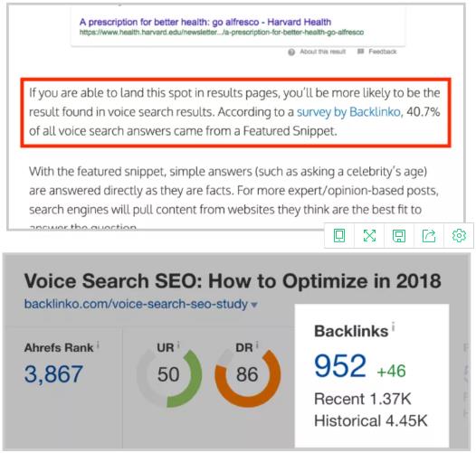 从您所在领域的权威博客和新闻网站获取反向链接的最佳方法是什么?答案就是做一个行业研究。比如SEO行业的海外知名博主Backlinko就发过一个关于语音搜索的行业调查,因为内容专业且全面,不到一年,就获得了900 多个反向链接。