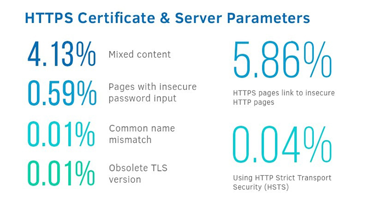 根据数据统计,4.13%的页面采用了HTTPS和HTTP的混合模式