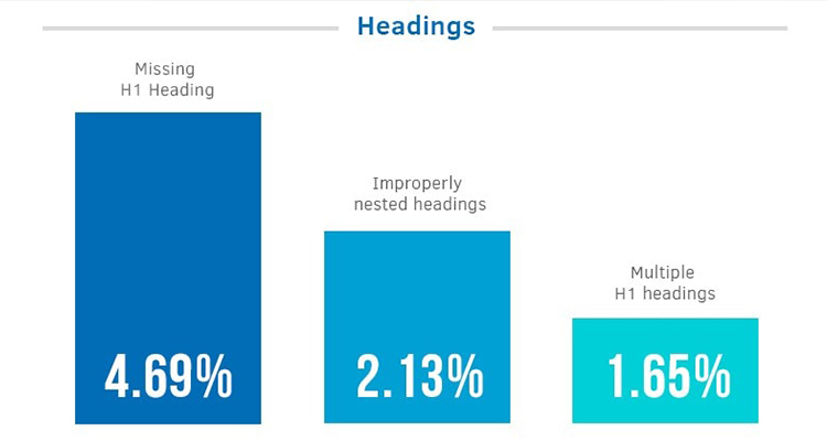 缺少H1标签的网页占比约为4.69%。网站上的每一个页面都应该添加H1标签,且每页只能使用一次。