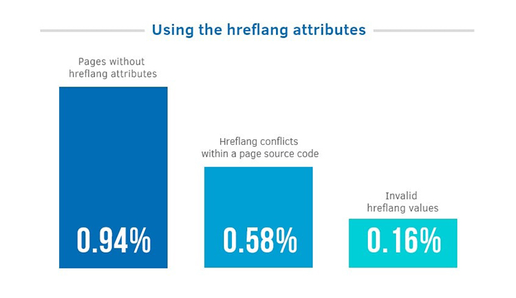 没有Hreflang标签的页面占比约为0.94%,Hreflang在页面源代码内有冲突的页面占比约为0.58%,无效Hreflang的页面占比约为0.16%。