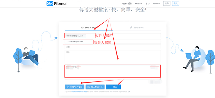 有些外贸行业有时需要给客户传视频之类的几十个G的大文档,如果选择寄CD给老外的话,运费会非常昂贵,让老外下载百度云盘类的工具一般也不妥当,通过该网站,输入你的email,客户email,然后上传文件后点击传送。他邮箱里就出现一个连接,直接点连接就能下载了。