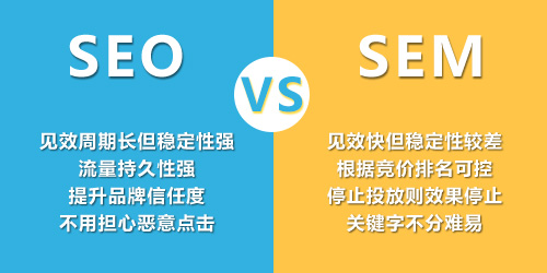 SEO和SEM是互补的推广方式,如果是在推广预算有限的情况下,可以选择先做SEO,让网站优化提升关键词排名,获取长久的流量和用户信任感;