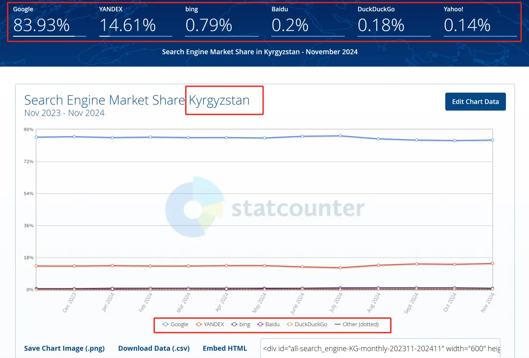 吉尔吉斯斯坦当地主要使用Google,也有一部分群众使用Yandex,近年来,Google的市场占比呈下降趋势,Yandex则有缓慢增幅,使用搜索引擎开发客户时,可以Google为核心,辅以Yandex作补充。