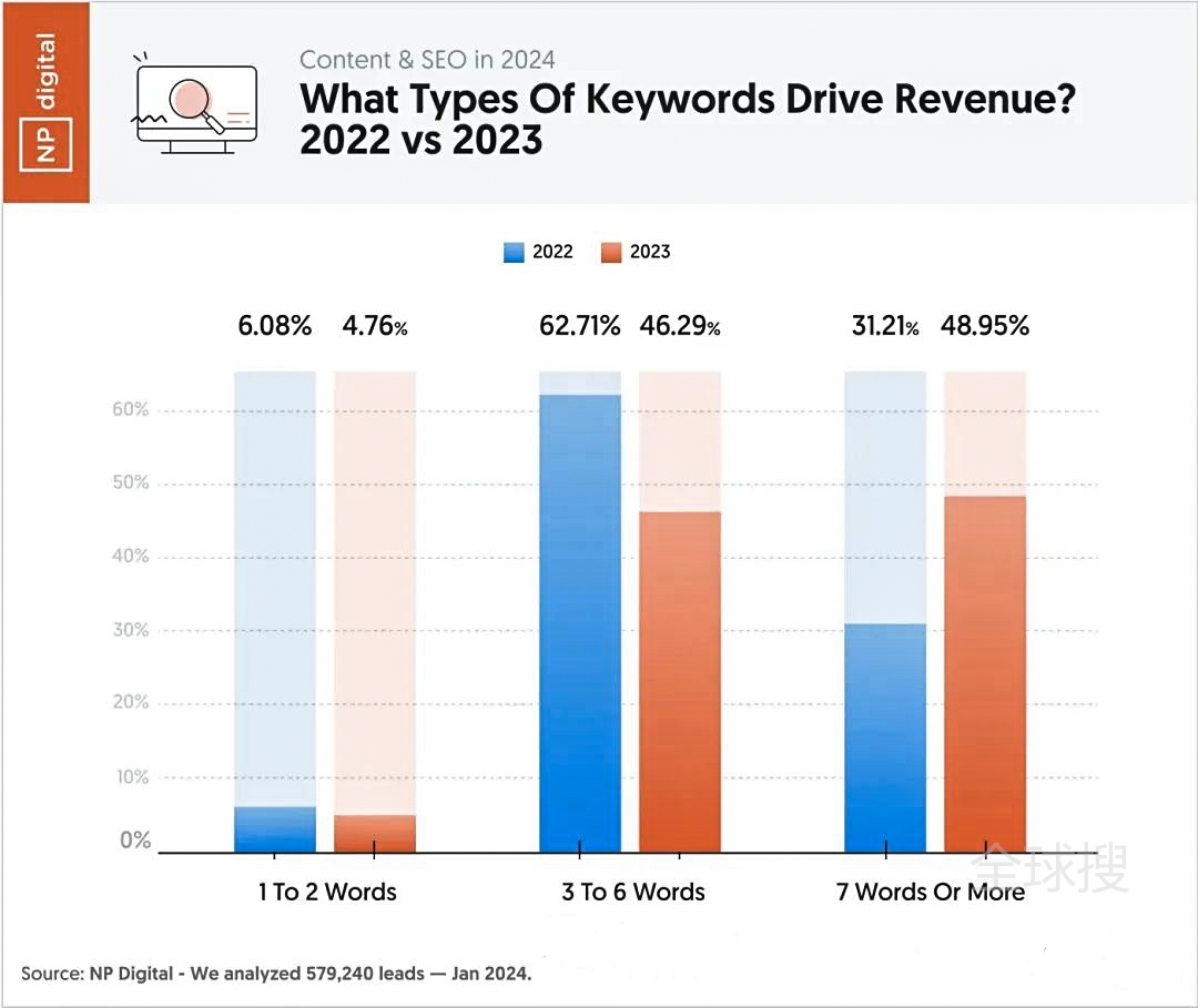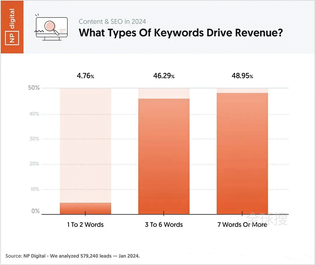 NP Digital公布了关于SEO关键词优化的一些统计数据,从SEO的角度, 什么样的关键词能带来最多的流量?