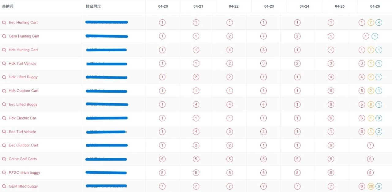 核心关键词排名部分展示