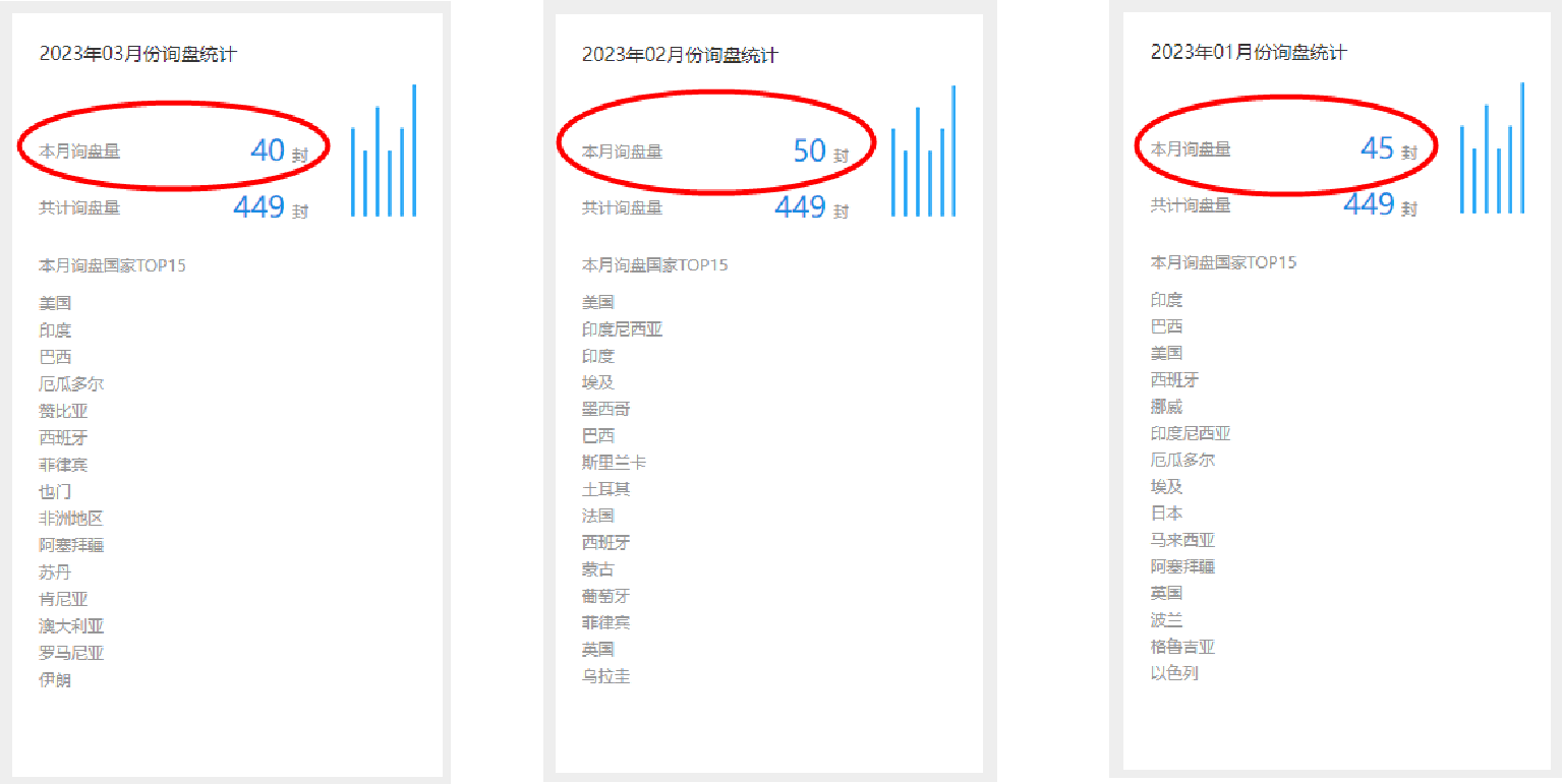 近期每月收到询盘40+封!