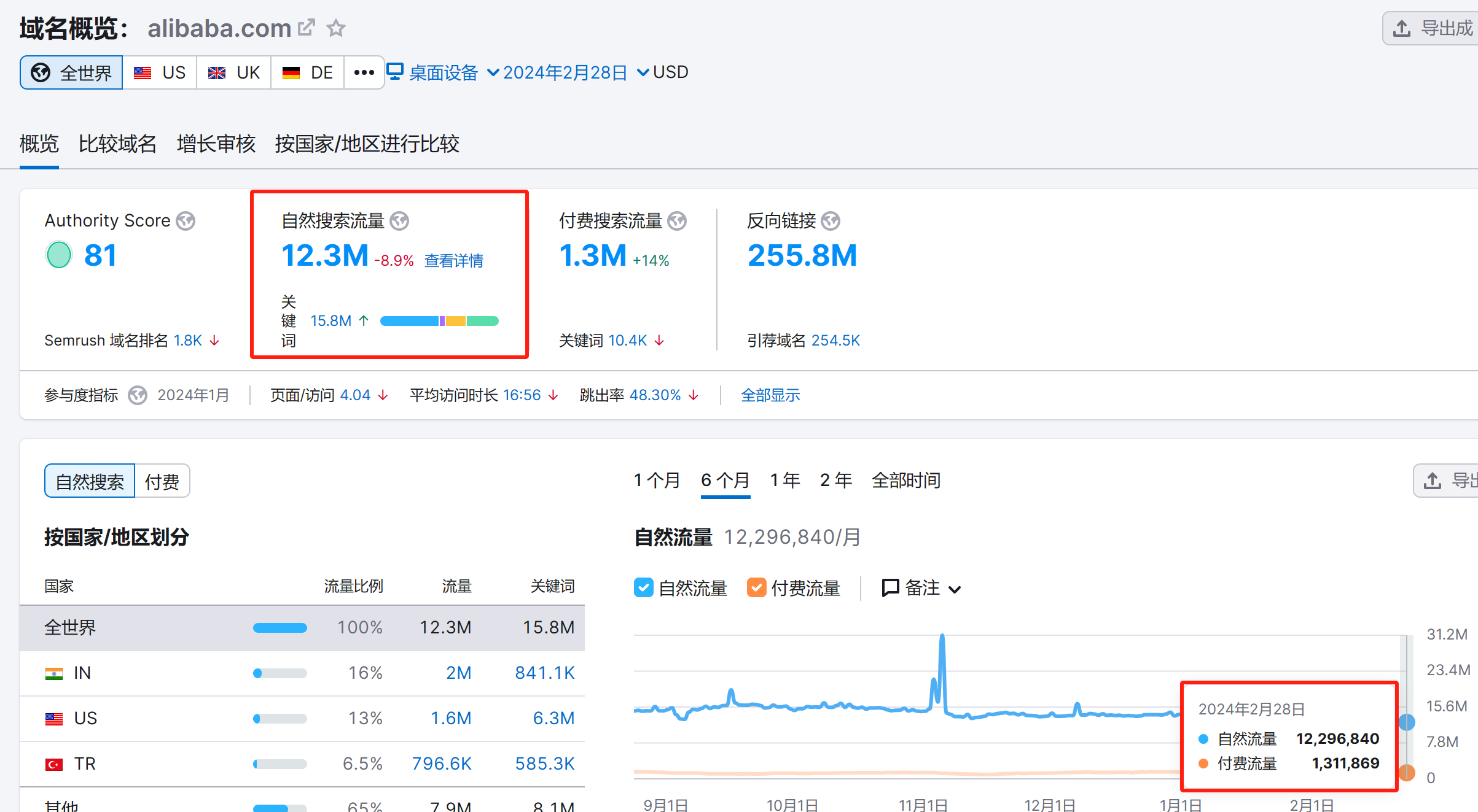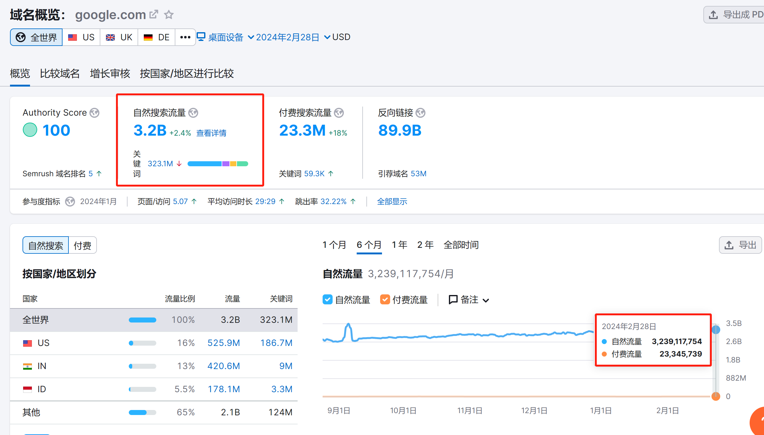 关总在采访中提到,有很多专业的目标客户都是通过独立站上面的联系方式找到她,独立站主要的引流渠道便是搜索引擎,据Semrush显示,搜索引擎谷歌2024年2月份的自然搜索流量已达到32亿,而国内最大的B2B平台的流量同期为1千2百万左右,并且谷歌的流量一直呈上升趋势,平台却呈下降趋势。