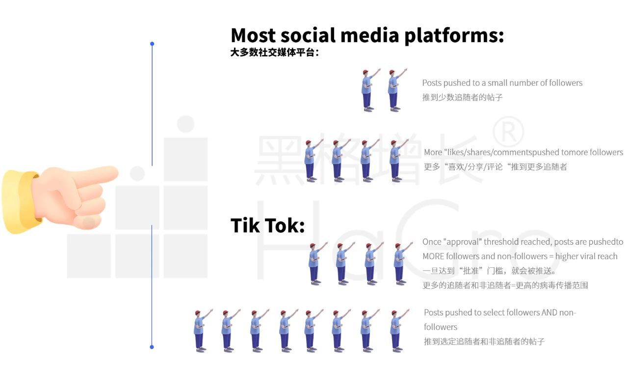 它利用了用户在平台创建和共享内容的兴趣倾向,成为了病毒式传播的传播潜力。