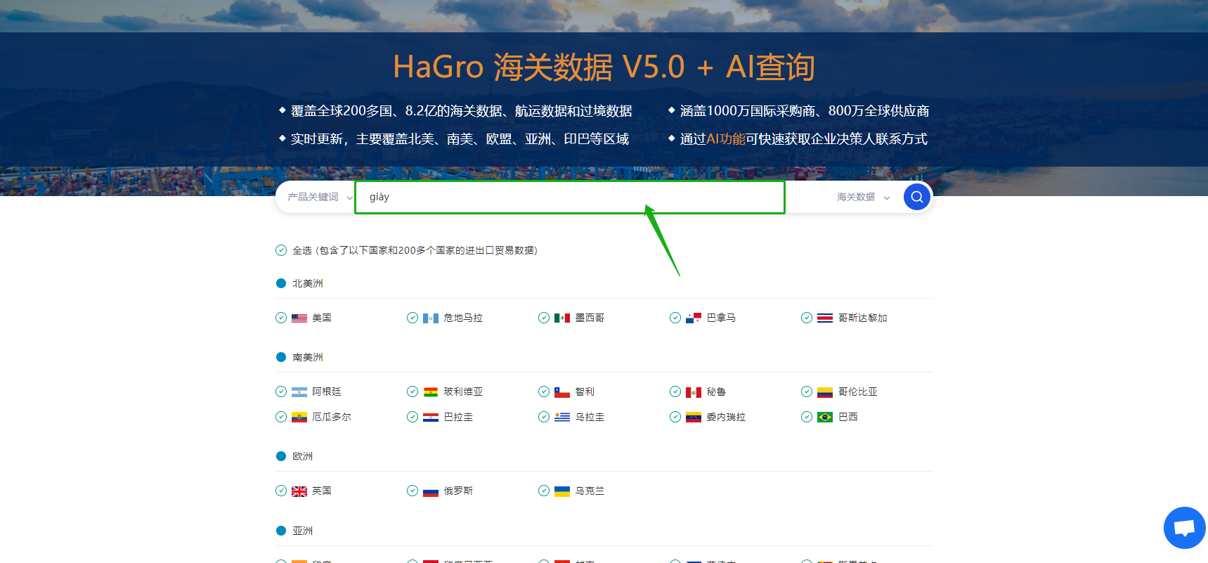 例如制鞋行业,可直接输入越南语“giày”,搜索海关记录中有关鞋类的采购商。