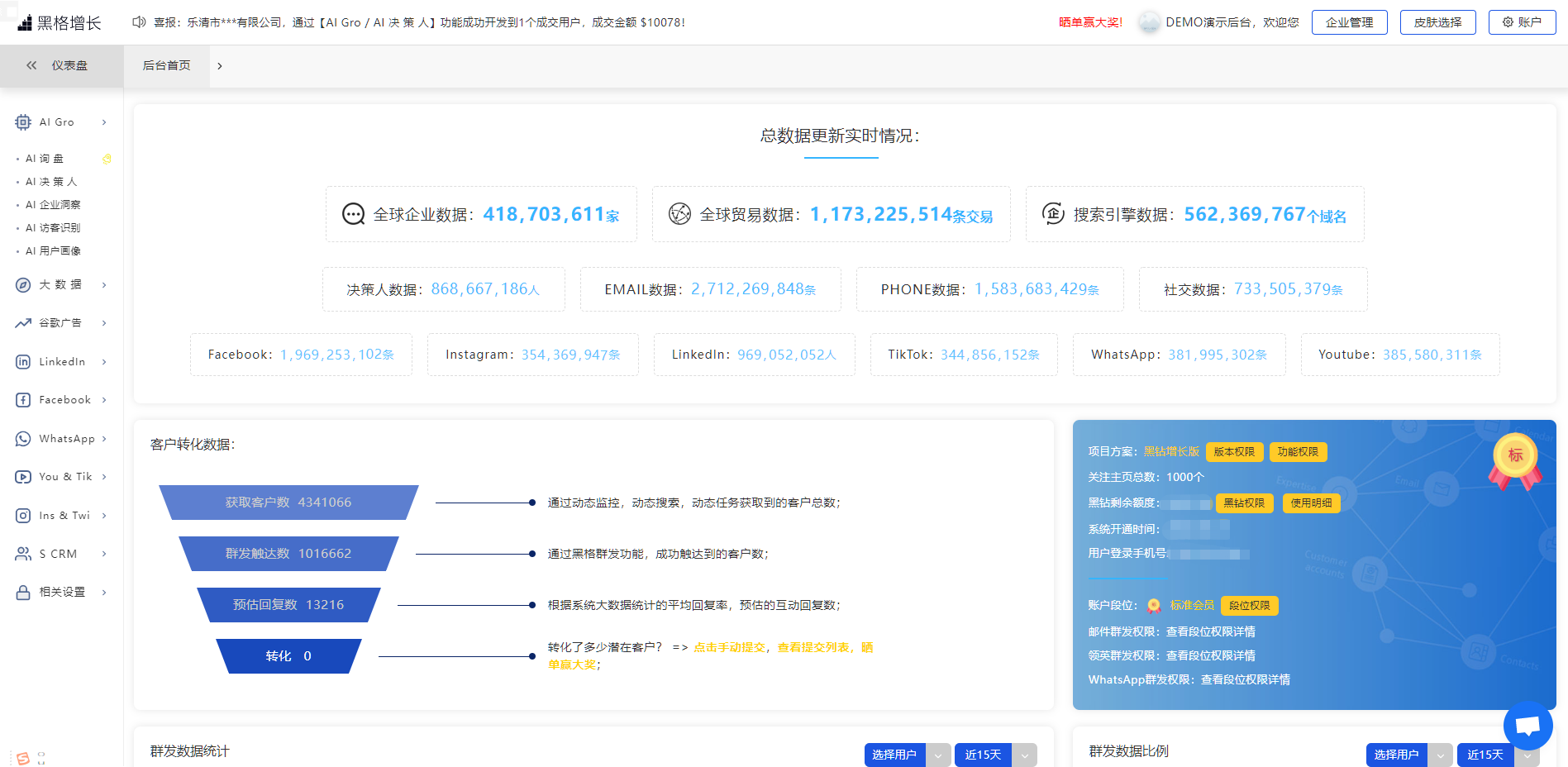 ▶ 黑格增长(通过很多渠道挖掘客户的精准联系方式+海关数据+广告优化+邮箱检测+群发消息+客户管理等等):