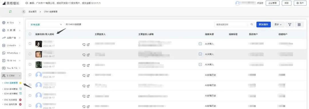 为了使销售线索更加清晰,管理更加便捷,黑格增长统一了企业与企业决策人之间的联系,增强线索间的联动性。