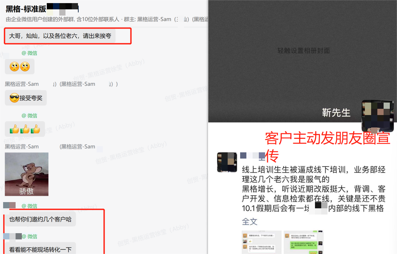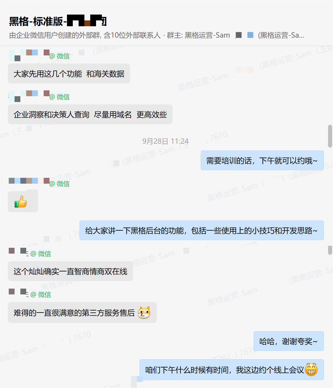 黑格增长的售后运营人员提供保姆式的贴心服务,定期线上直播培训,也会上门线下一对一系统培训,耐心解决,并优化解答方案,让更多黑格用户轻松易懂。