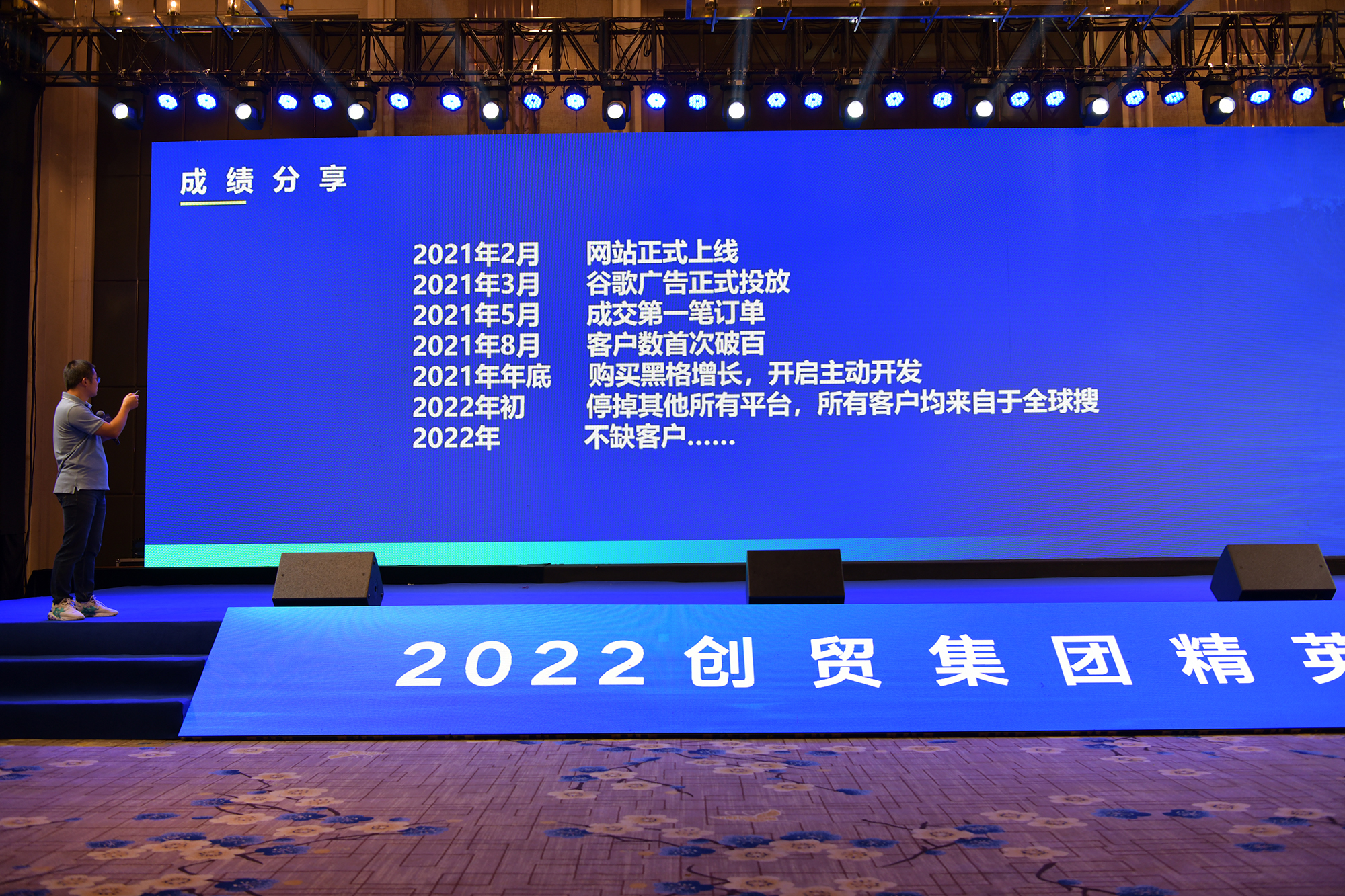 同时,大会还邀请到优秀合作客户代表——四川中川环保科技有限公司外贸负责人Dennis Win带来了疫情下外贸获客的成功经验,作为拥有十多年外贸经验的老手,经历过第三方平台运营的失败、无官网无展会的低谷期;