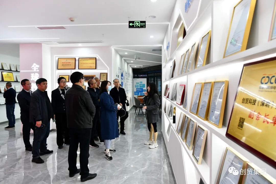 贾总和程总代表创贸集团成都技术总部全体成员对莅临参观交流的领导表示热烈欢迎。期间,贾总和程总陪同领导深入了解了成都技术总部的各个部门,并详细介绍了创贸集团的发展历程、企业产品、业务范围和集团在助力出口贸易领域的突出成就。