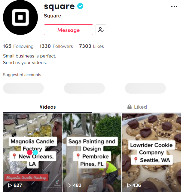 创作特点:与客户合作,通过重新发布使用square的客户制作内容,减少自身视频制作的时间,帮助小企业提高曝光,不管是咖啡店、陶罐工匠、蜡烛制造商等等,实现双方共赢,也扩大受众群体。