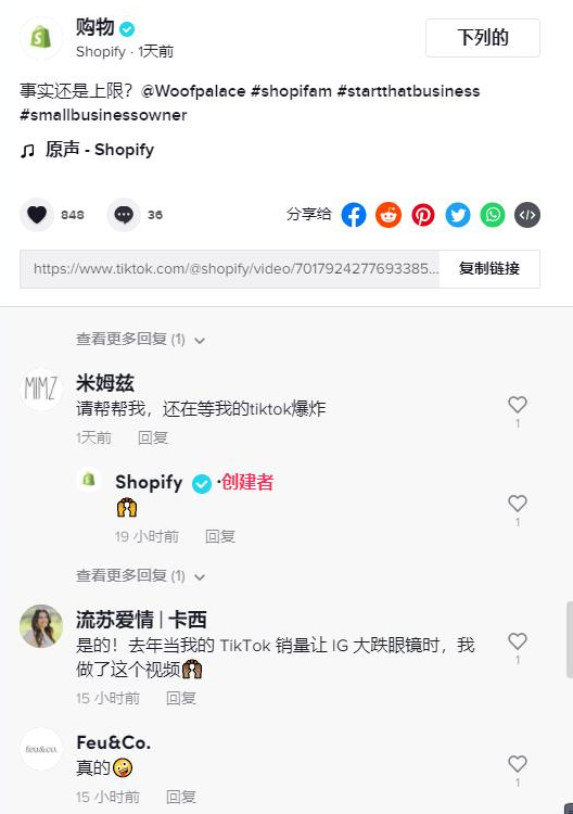 比如宣传企业价值或慈善工作,将人性化、生活化的企业形象烙在客户心中,拉近心理距离,再通过TikTok的传播优势(短视频比文本、图像更生动,更具传播性),由此产生更多的分享和转化。
