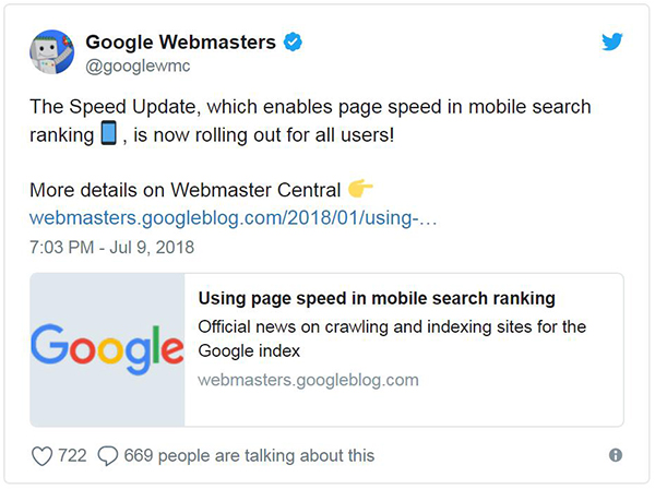 日前,Google正式宣布:将网页速度做为影响移动搜索排名的一大因素。Google把这称作“速度升级”(speed update),并且在官方宣布现在正式向全世界推广。