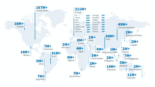 基于LinkedIn庞大的用户群,LinkedIn成为外贸企业开拓国外市场的重要途径。与其他社交平台不同,领英把“职场社交”发挥到极致。LinkedIn呈现了来自不同地域不同企业不同职位的职场人士,他们通过LinkedIn展示出自己的职业形象,获取商业洞察,拓展职业人脉,为自己的职场制造更多的机遇。